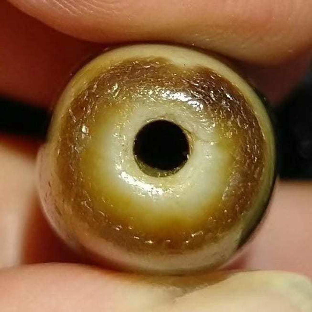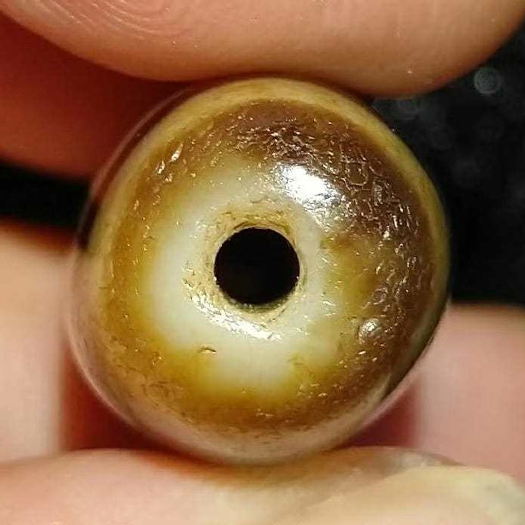 整体色泽浓郁老气,古朴沧桑,级至纯眼眼中天地天珠尺寸31 * 12.5天地案代表「天门」,方形图案代「地门」,有两个地门在弧度的一侧出现,称为「双地门天:珠」;一侧有天。门和地门,另一侧的图案也与之对称的,称作「双天双地天珠」许多生意人喜欢配戴这类天珠,因为他们认为可以阴阳调和,百福千祥。转换厄运,消除魔难。带来财富。)